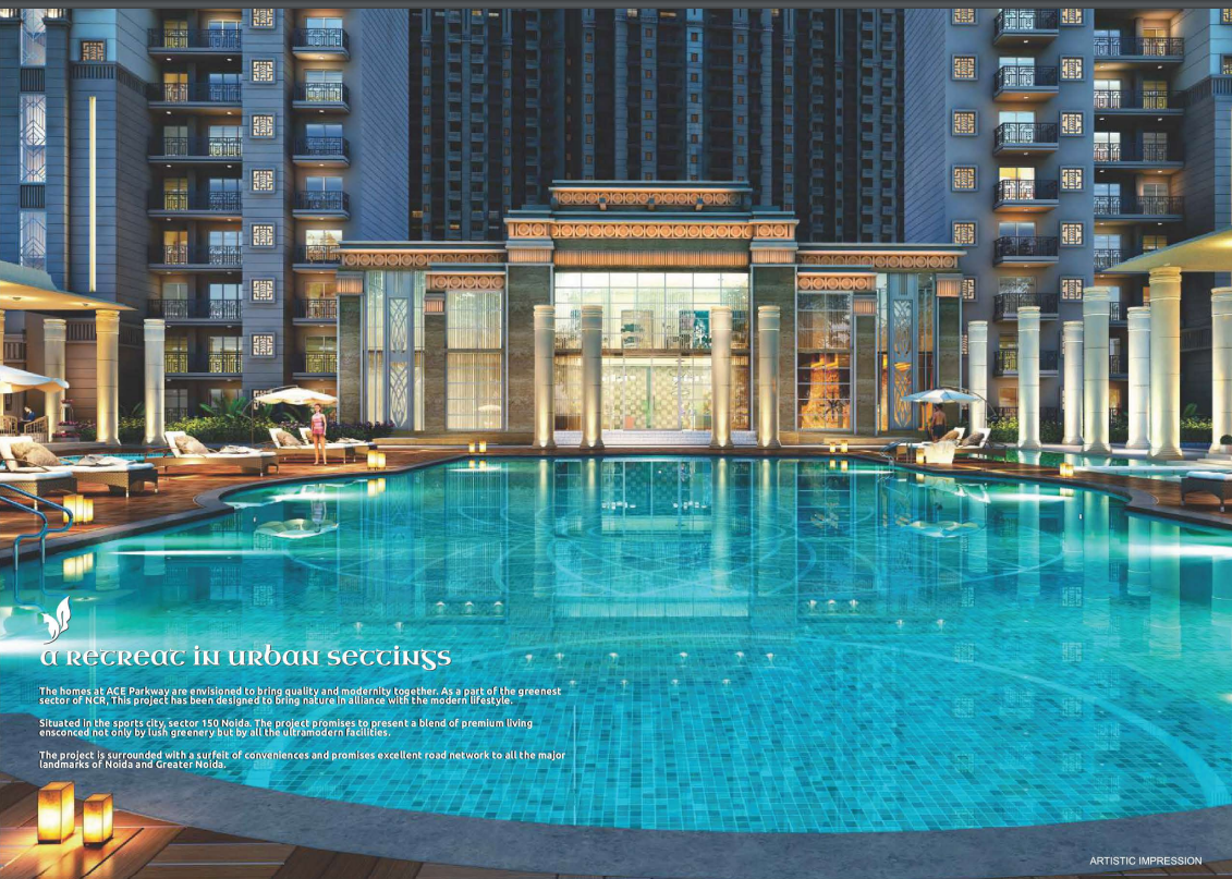 Set amidst the serene environs of Sports city in Sector 150, Noida, Ace Parkway is perfectly designed to take luxury and comfort to the next level. Spread across More then 11 acres of a three side open plot, the art deco design of Ace Parkway is done by architect Hafeez Contractor who has created a perfect balance of softscape, hardscape and waterbodies in its landscape.
