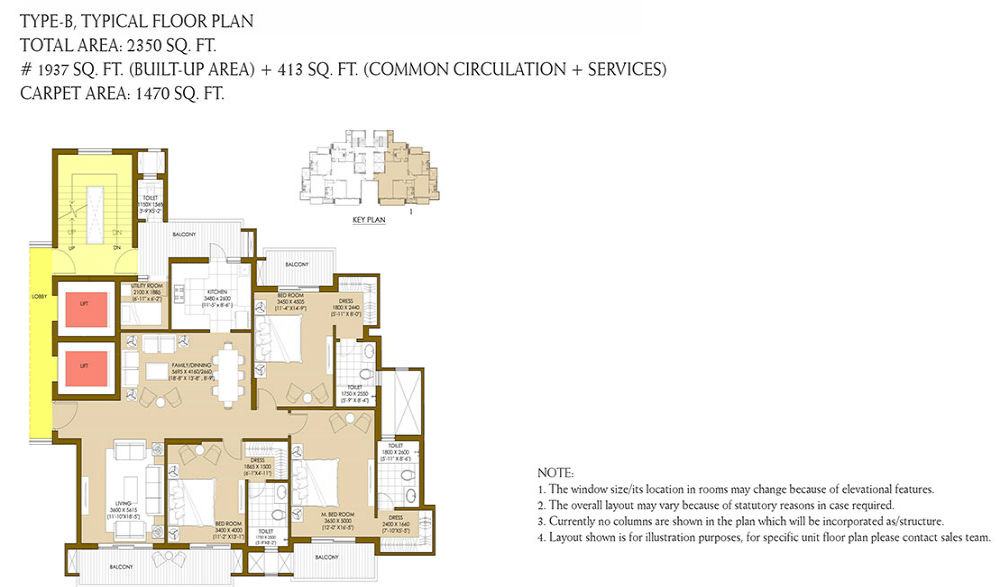 | 3 BHK + S.R | 2350 | ₹3.83 Cr |